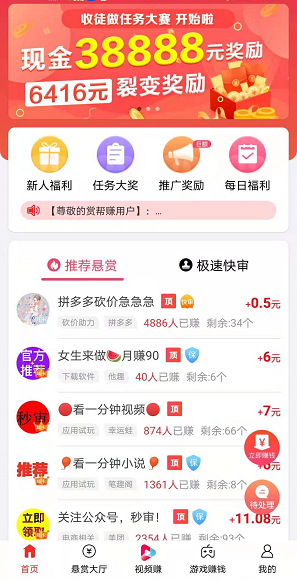 4、推荐悬赏和极速快审任务,审核要多快有多快。